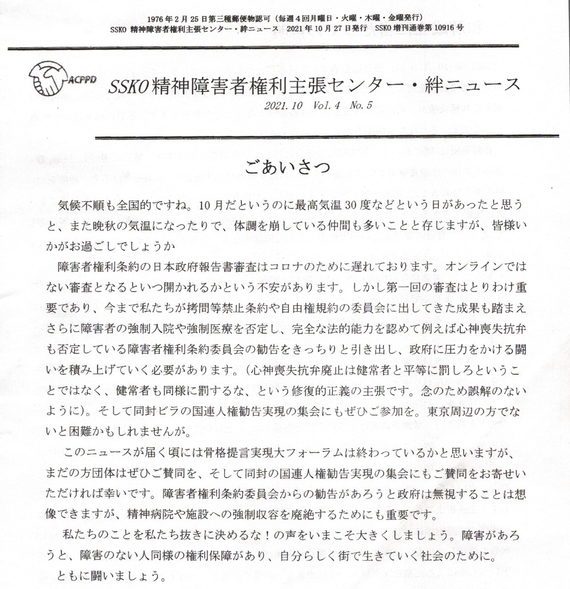 SSKO 精神障害者権利主張センター・絆ニュース 2021. 10 Vol. 4 No. 5