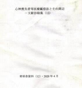 2026-01-15 / 最終更新日時 : 2026-01-15 mysy 医療観察法 Medical Observation Law 心神喪失者等医療観察法とその周辺ー文献抄録集(12) 心神喪失者等医療観察法とその周辺ー文献抄録集(12) 青柿舎資料(12)ー2020年4月 をアップします。但し、ダウンロードは制限します。 ダウンロード希望者はお問い合わせ欄にメール下さい。