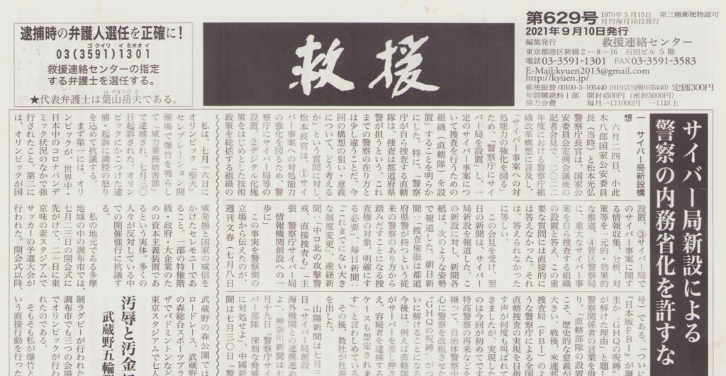 2026-01-27 / 最終更新日時 : 2026-01-27 mysy ニュース等 News etc. 救援 第629号 2021年9月10日発行 救援 第629号 2021年9月10日発行 をupします。 救援-第629号-2021年9月10日発行
