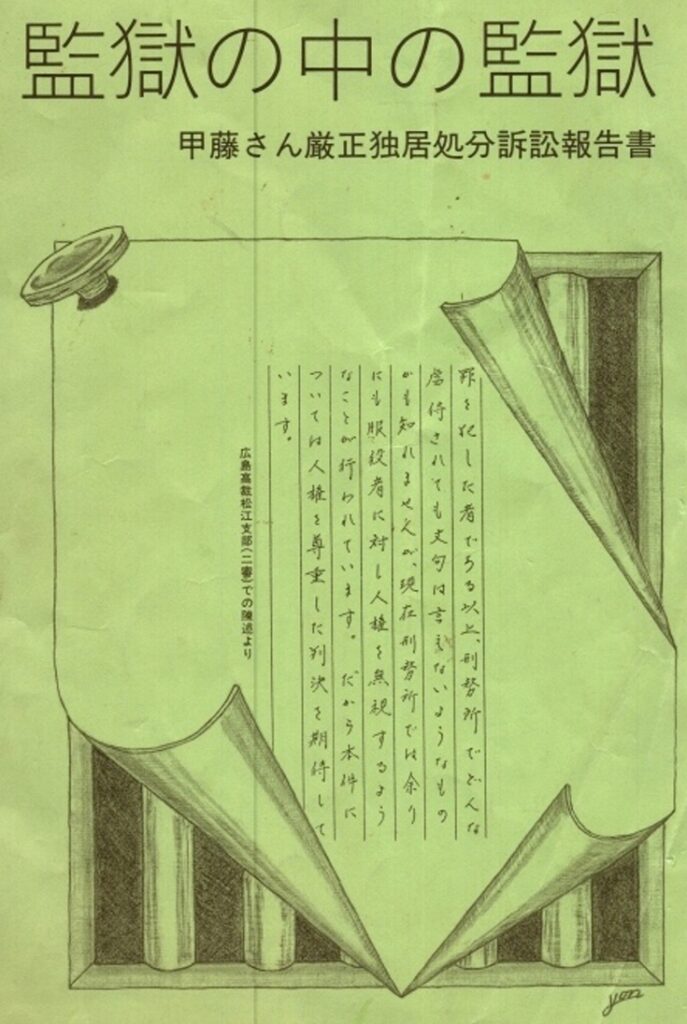 2026-01-28 / 最終更新日時 : 2026-01-28 mysy 裁判・判決文 Trial and Judgment Documents 監獄の中の監獄 甲藤さん厳正独居処分訴訟報告書 監獄の中の監獄 甲藤さん厳正独居処分訴訟報告書 1990年10月1日 甲藤厳正独居訴訟弁護団 発行 (全41ページ) をアップします。 監獄の中の監獄-甲藤さん厳正独居処分訴訟報告書-1990年10月-甲藤厳正独居訴訟弁護団
